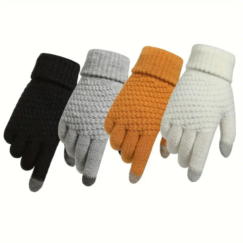TOUCHSCREEN-COMPATIBLE GLOVES MADE IN PART WITH RECYCLED MATERIALS.
